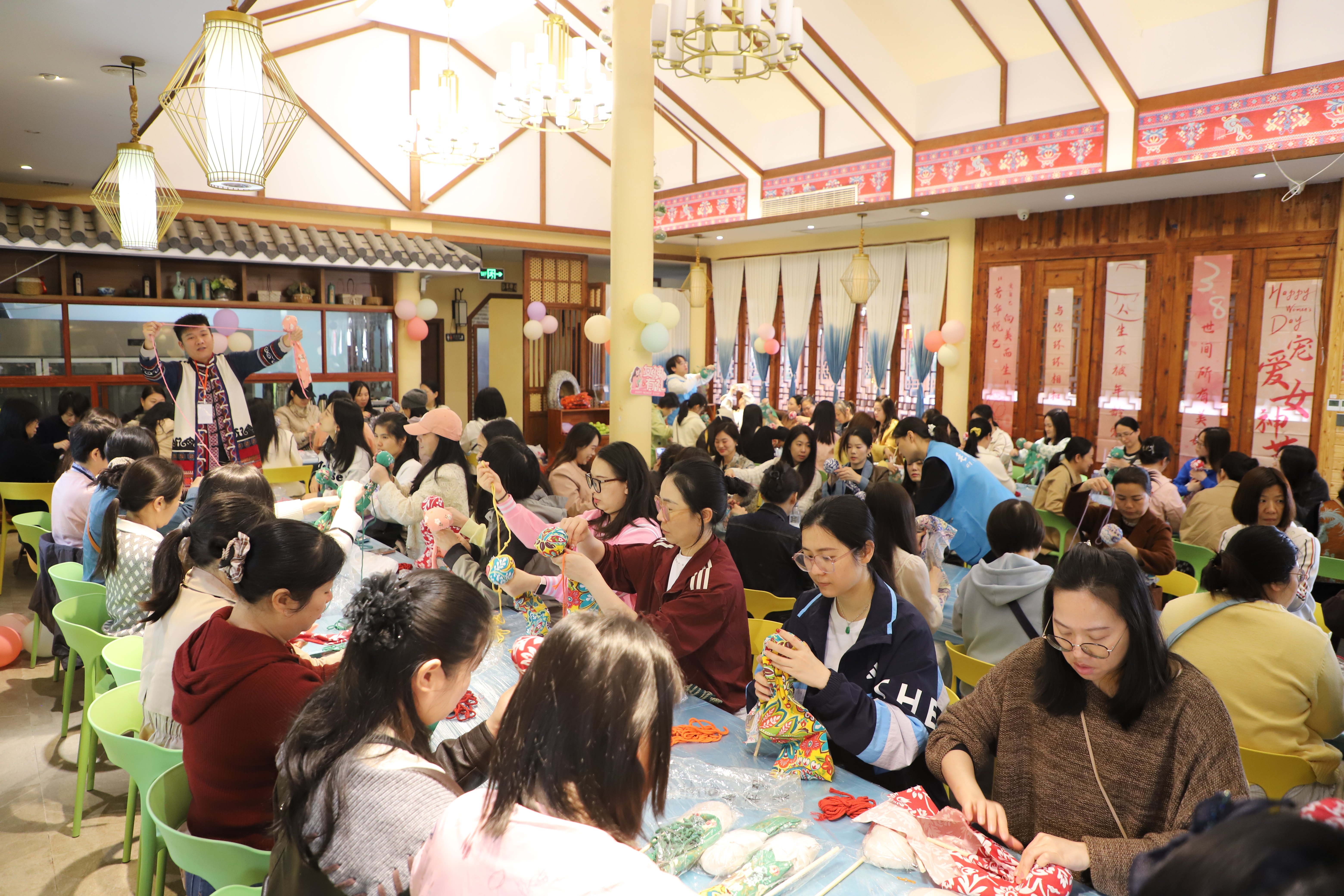 活动现场,女职工们在非遗传承人的专业指导下,沉浸式领略毛南族深厚的文化底蕴与独特民俗风情。在艾草养生锤制作环节,大家穿针引线、精心打磨,将传统手工艺的匠心融入指尖方寸。随后,女职工们漫步于古色古香的小镇,交流互动、定格美好瞬间。大家在轻松愉悦的氛围中舒缓身心、增进情谊,充分展现了集团女职工昂扬向上、温婉雅致的精神风貌。